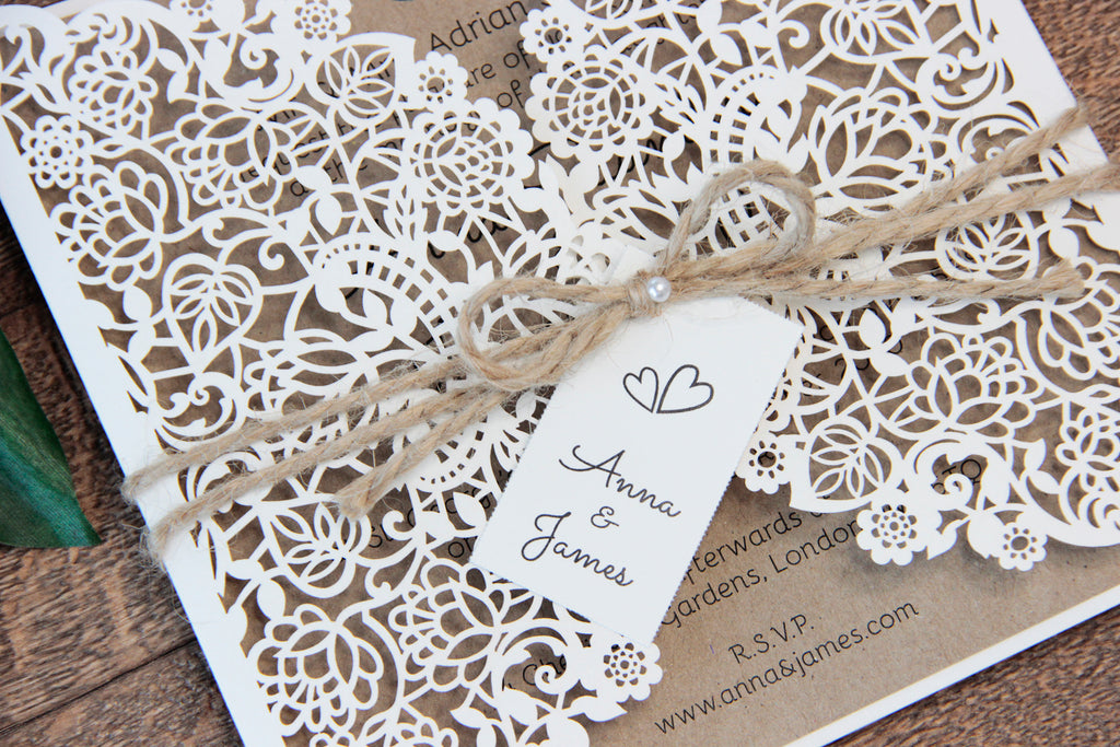 Cream Square Laser Cut Wedding Invitations with Cream Insert and Gold Glitter